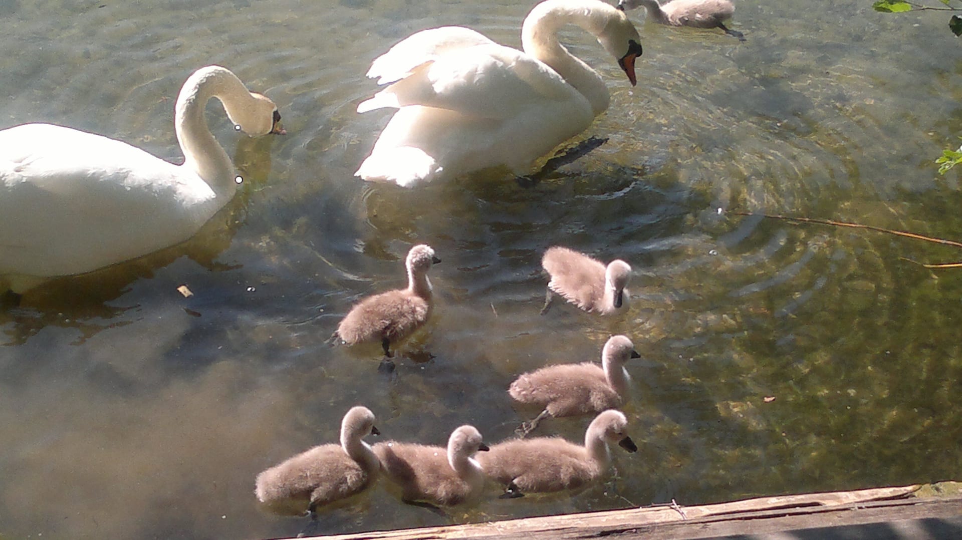 Ein Schwanenpaar mit ihrem Nachwuchs.Sooo herzig