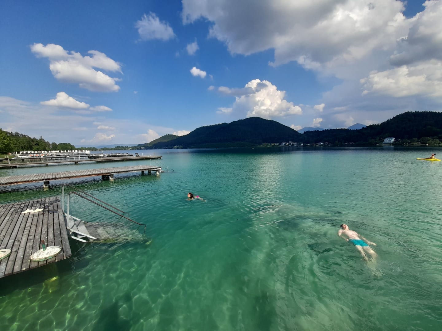 Ausblick vom hoteleigenen Steg (abgesetzt vom Hotel, einige Gehminuten) auf den Klopeiner See