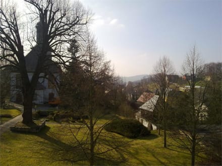 Zimmerausblick auf den Friedhof mit Kapelle