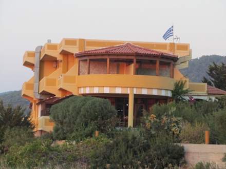 Balkone der Pension Liros mit seitlichen Meerblick