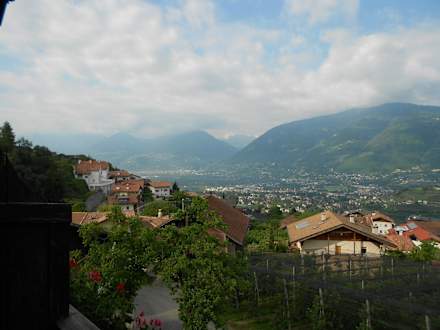 Blick vom Zimmerbalkon auf Meran