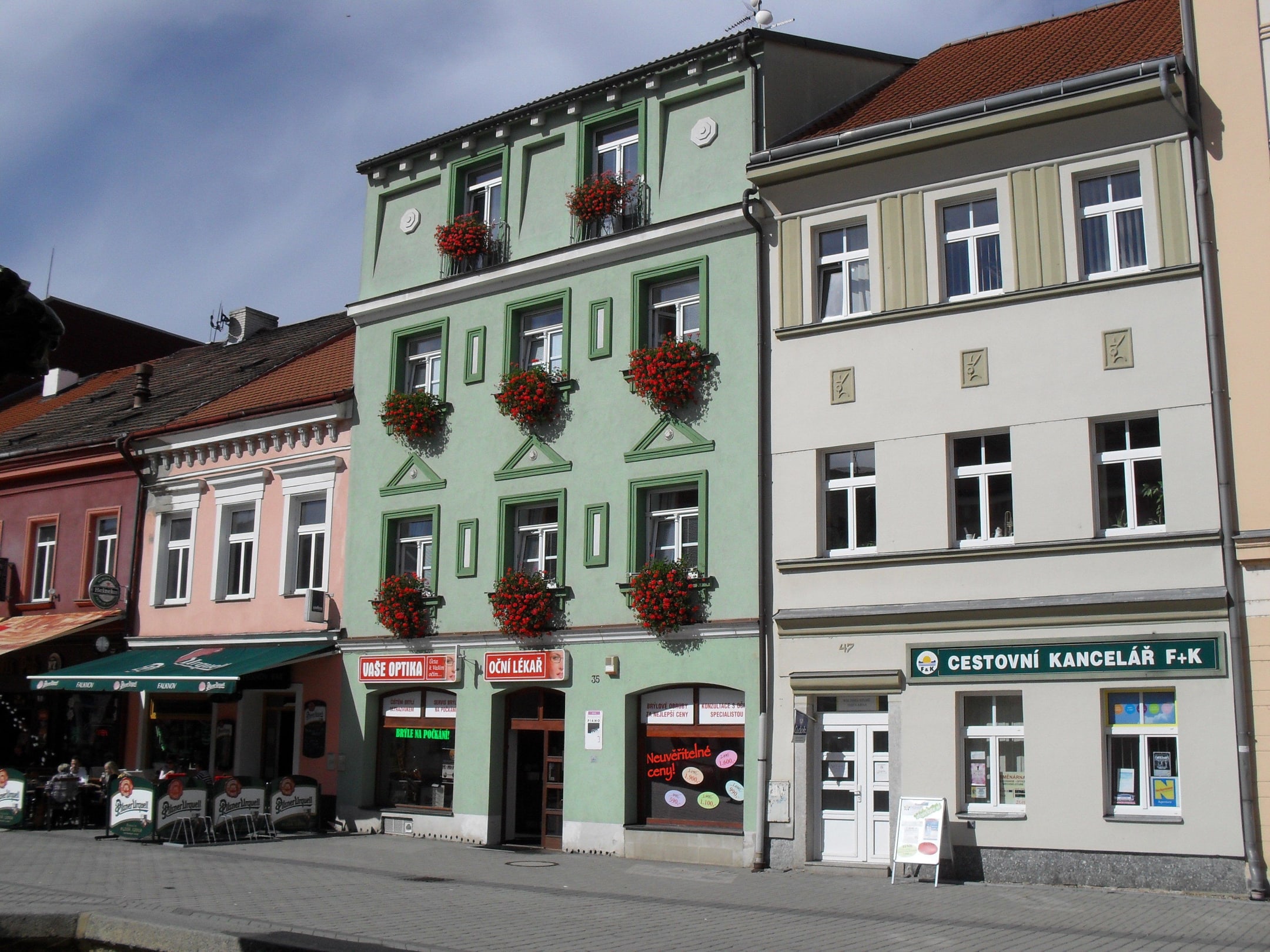 Pension ist das grüne Gebäude