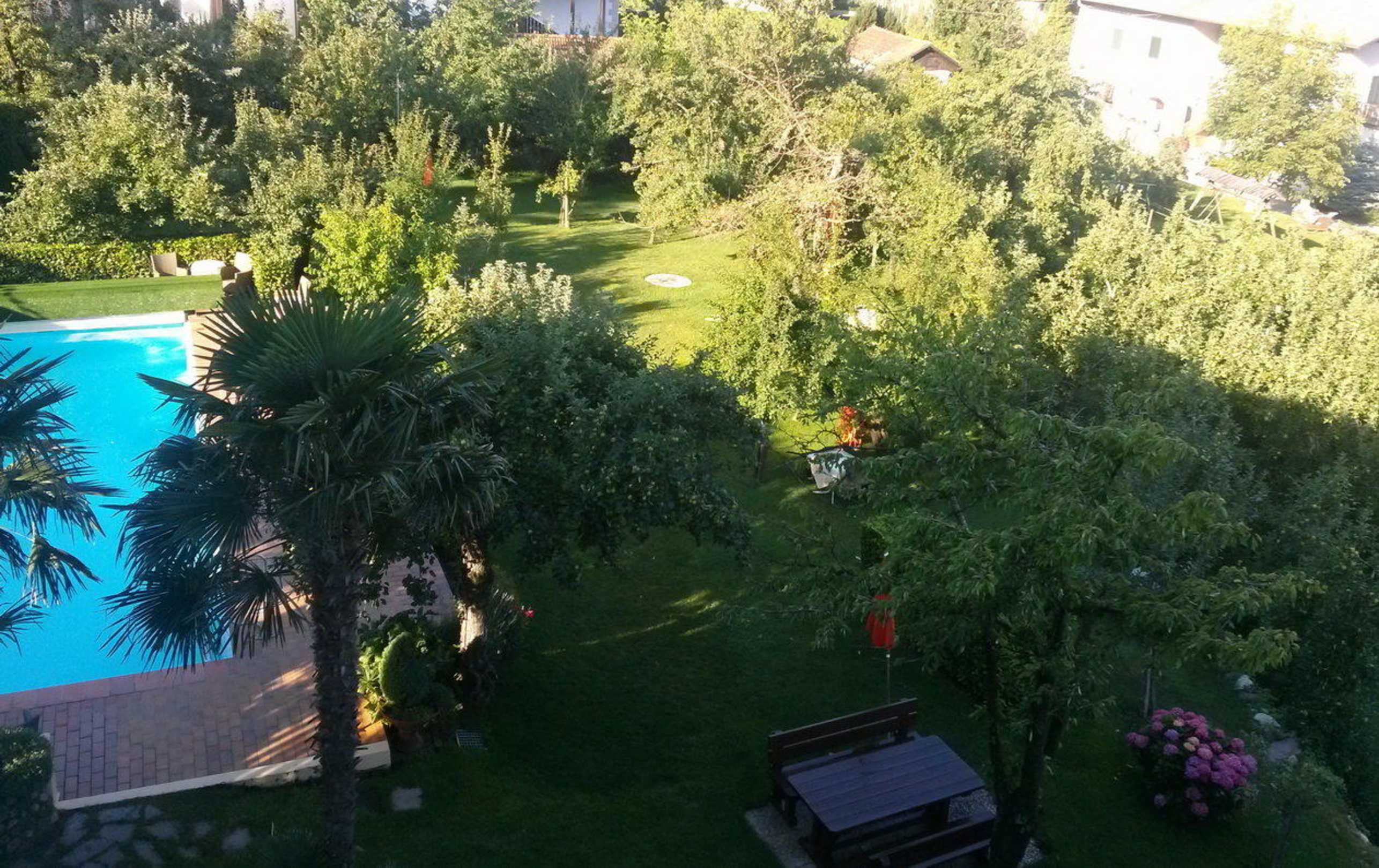 Ausblick auf den Gepflegten Obstgarten und Pool