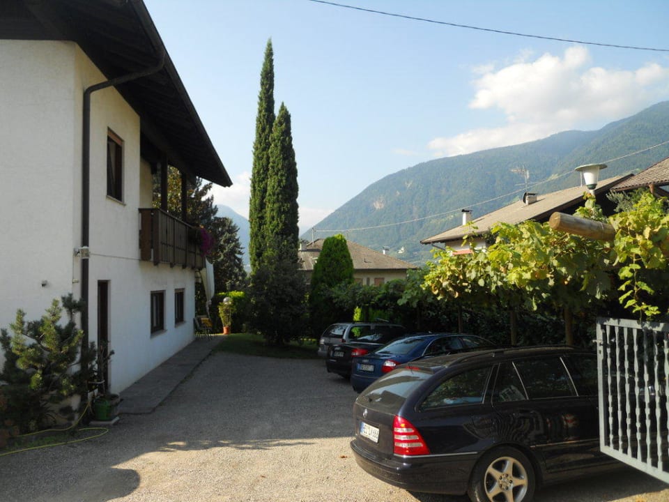 rechts ein Teil der Parkplätze