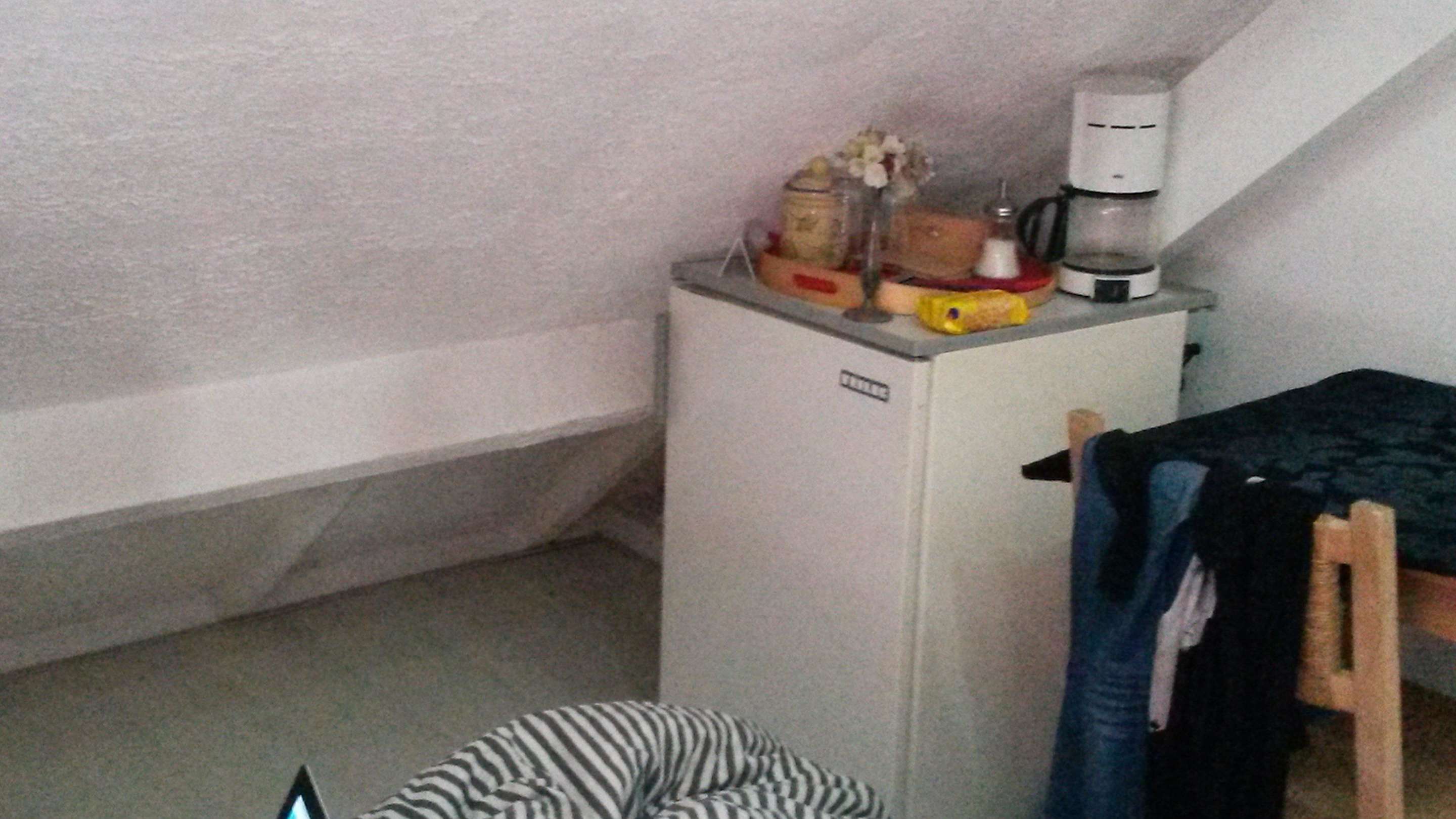 Ein Kühlschrank war die Küche, die wir in unserem ursprünglich reservierten Zimmer haben sollten. Andere Zimmer haben Küchenzeilen, nicht unterm Dach.