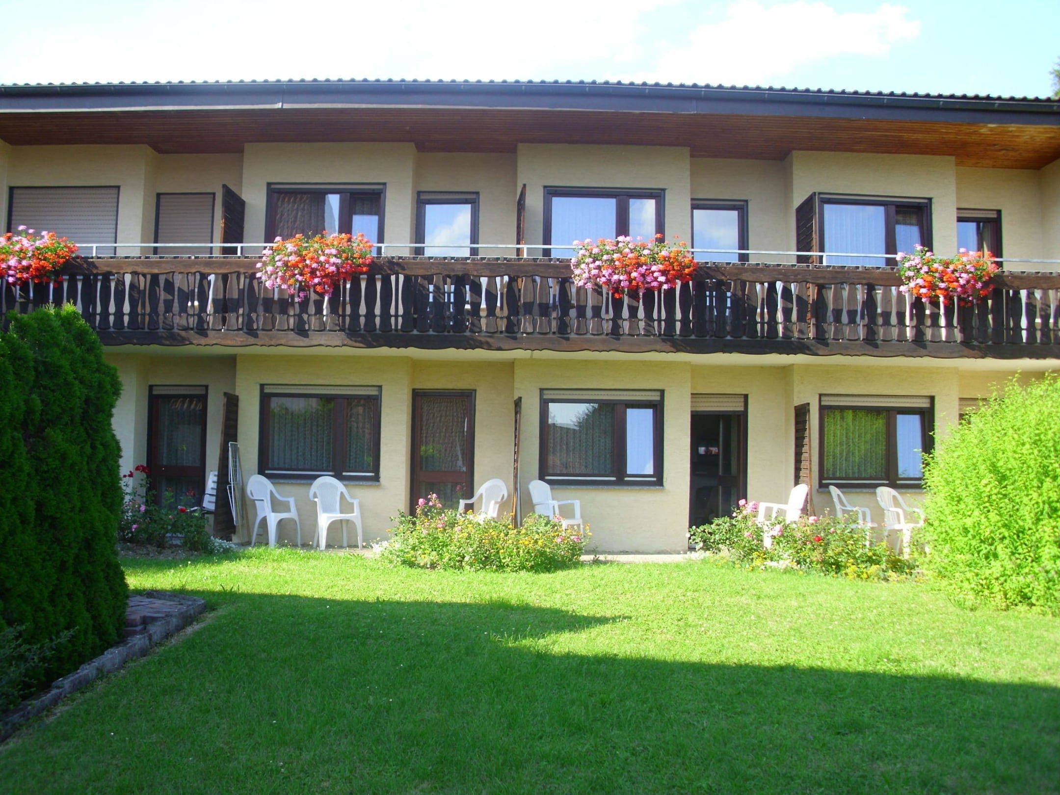 weiter Ansicht der Pension von der Gartenseite aus