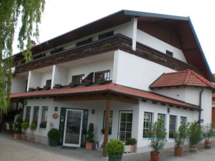 Pension Sonnenhof, der erste EindruckDer erste Eindruck vom Sonnenhof in Mörbisch am See. Ein sehr gepflegtes und sowohl am Haus als auch im Garten mit vielen Pflanzen/Blumen geschmücktes Haus und liebevoll angelegtem Garten, in dem man im Schatten der großen Trauerweide dem Plätschern des kunstvollen Brunnens lauschen kann.