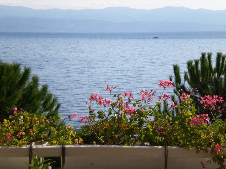Blick von der FrühstücksterrasseSo gemütlich sitzt man beim Frühstück und hat einen herrlichen Ausblick aufs Meer.