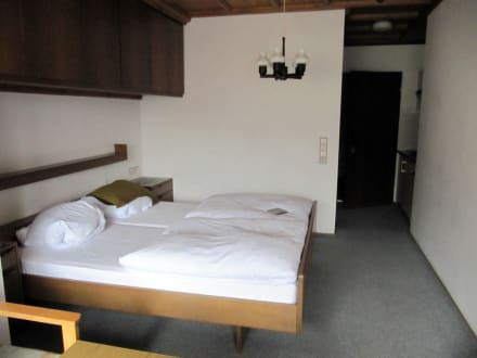 Zweibettzimmer Nr.6Zweibettzimmer Nr.6 mit Sitzecke+TV. Hinten rechts kleine Küchenzeile ( 2 Kochplatten, kleiner Kühlschrank, Spüle) gegenüber Badezimmer