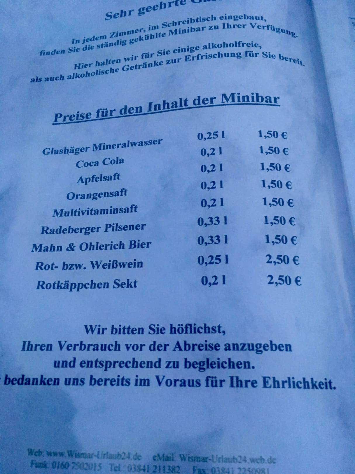 Faire Preise für Minibar Inhalt