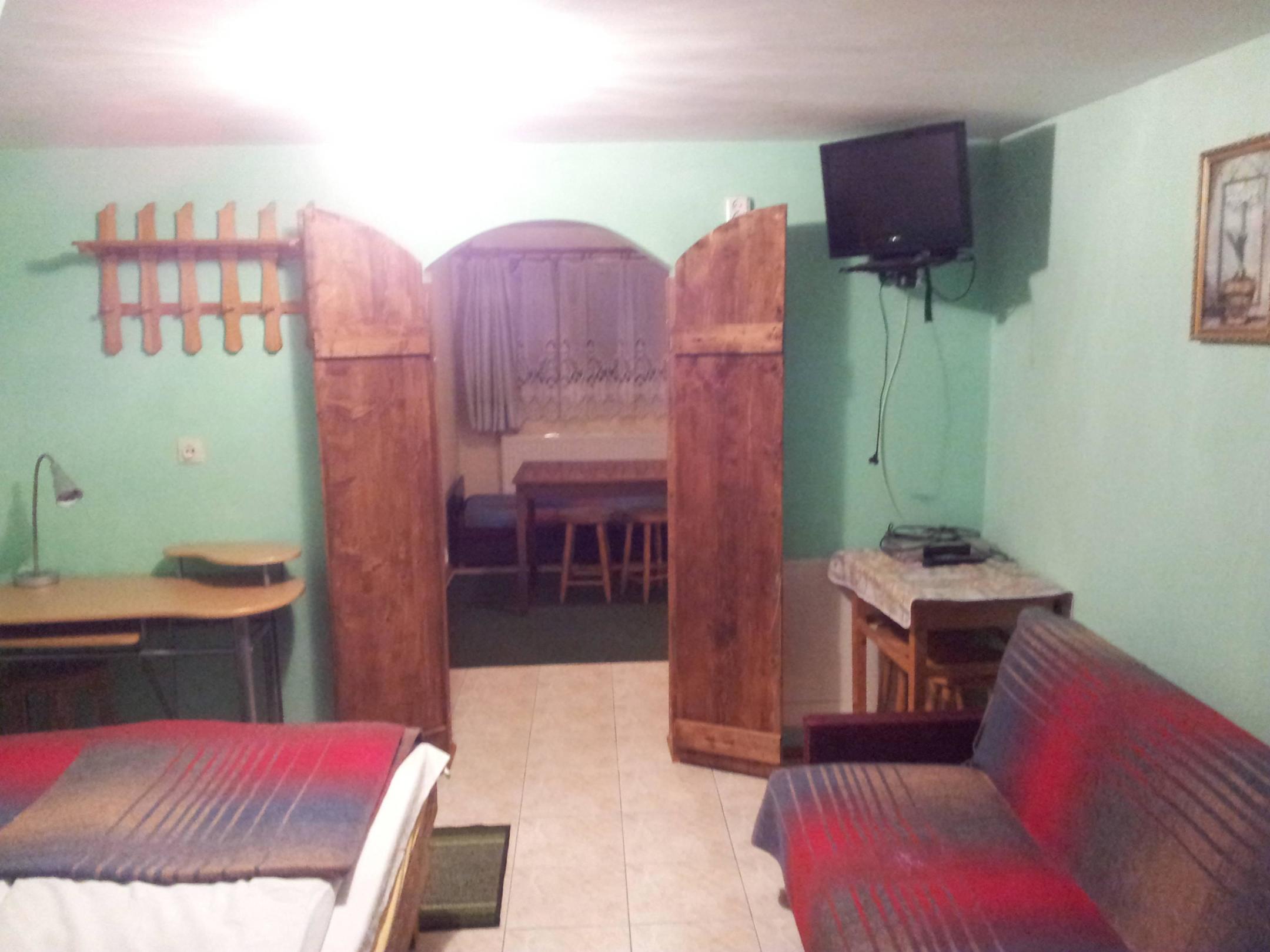 Dwupokojowy, rodzinny, z ładną łazienkąUroczy rodzinny apartament, dwupokojowy z wygodnym łóżkiem małżeńskim