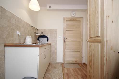 Pokoj Fioletowy 3 os aneks kuchenny i taras.