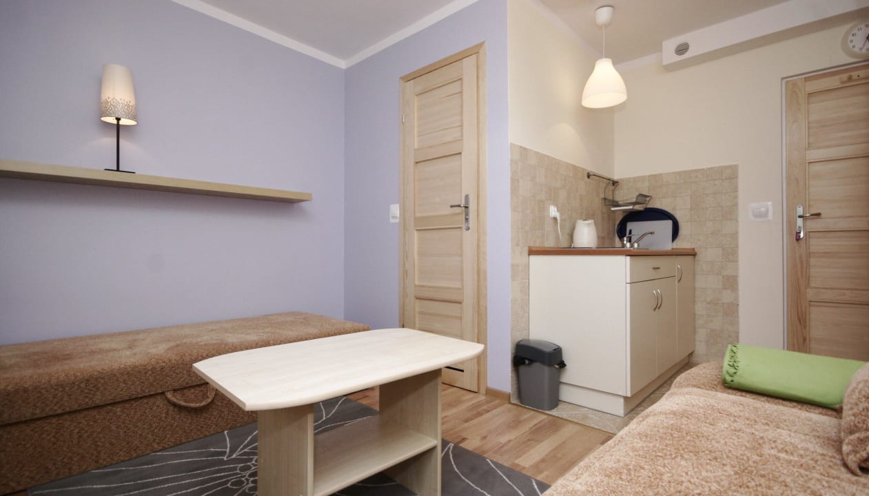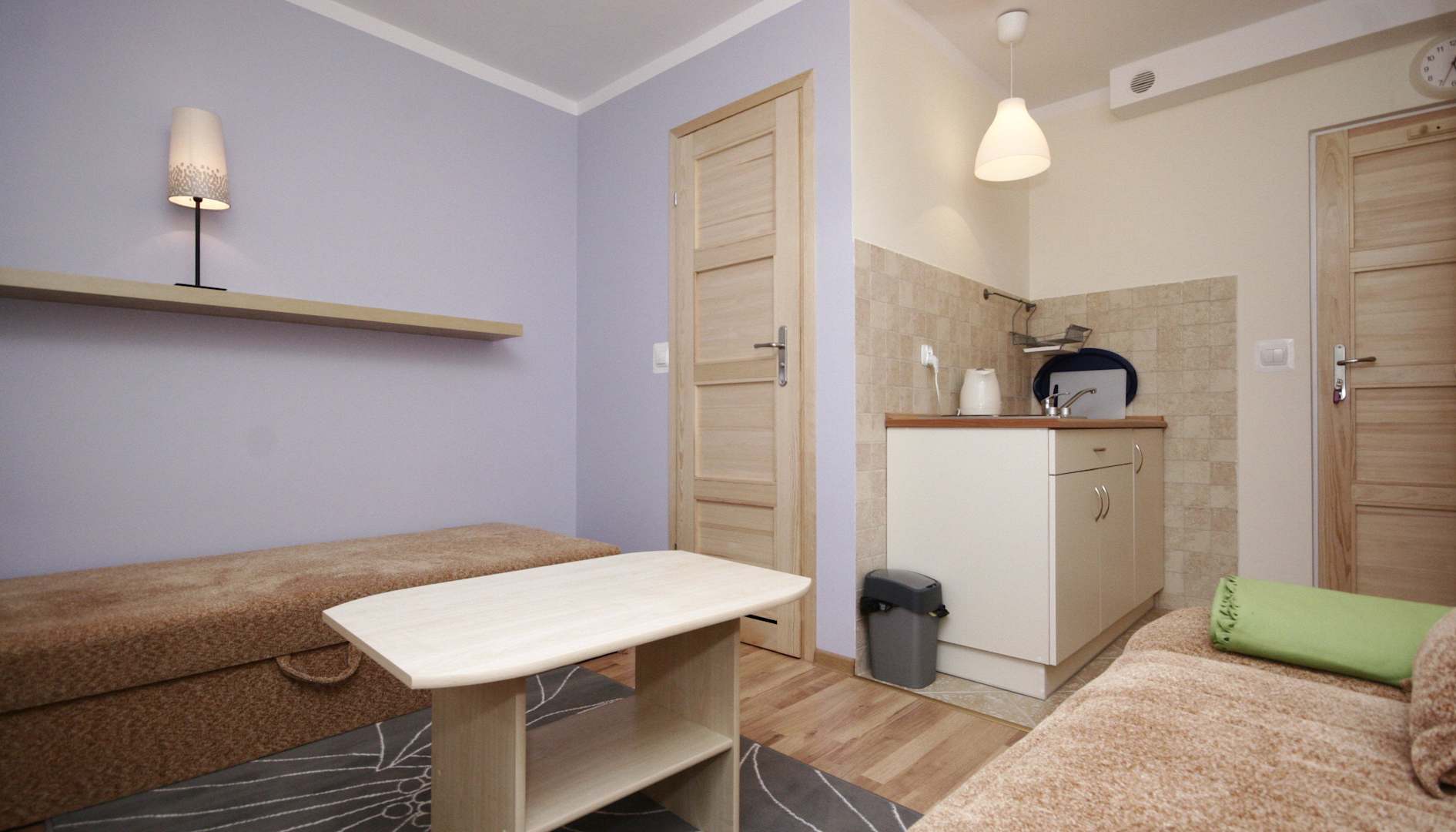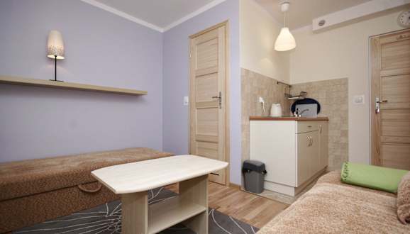 Pokoj Fioletowy 3 os aneks kuchenny i taras.