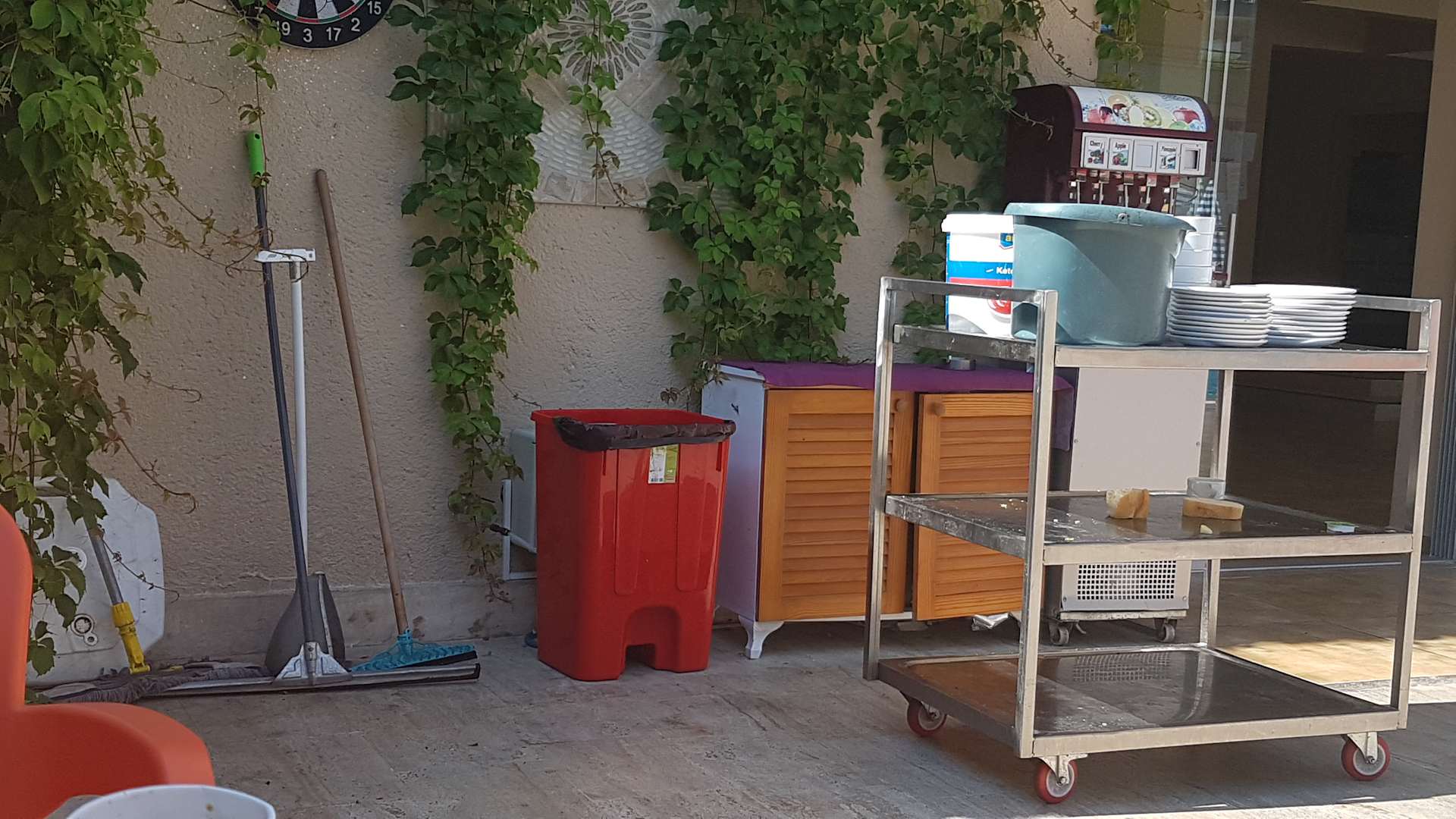 GastroÜberall stehen schmutzige Besen und Wischer rum.Der Servicewagen wird nie gereinigt