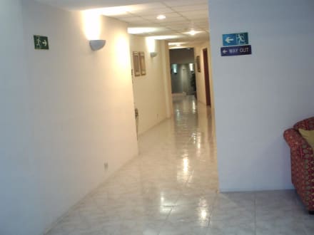 Einer der vielen! Gänge im HotelDieser Gang war endlich mal sauber (alle Gänge mit altem, kaputten Teppichen belegt)