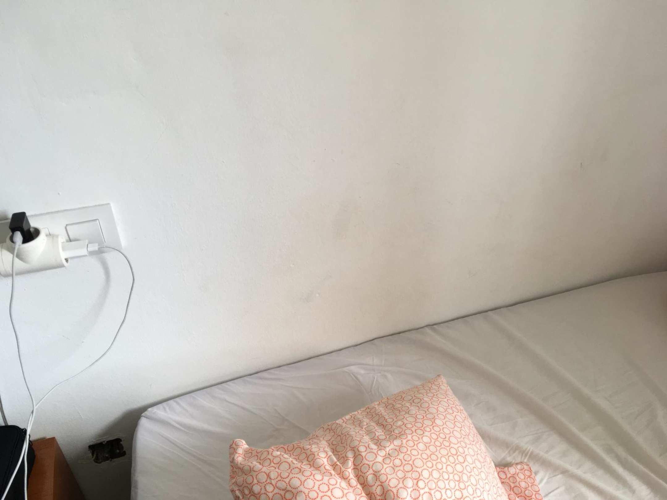 Schmutzige Wände, Steckdose links unten ohne Abdeckung
