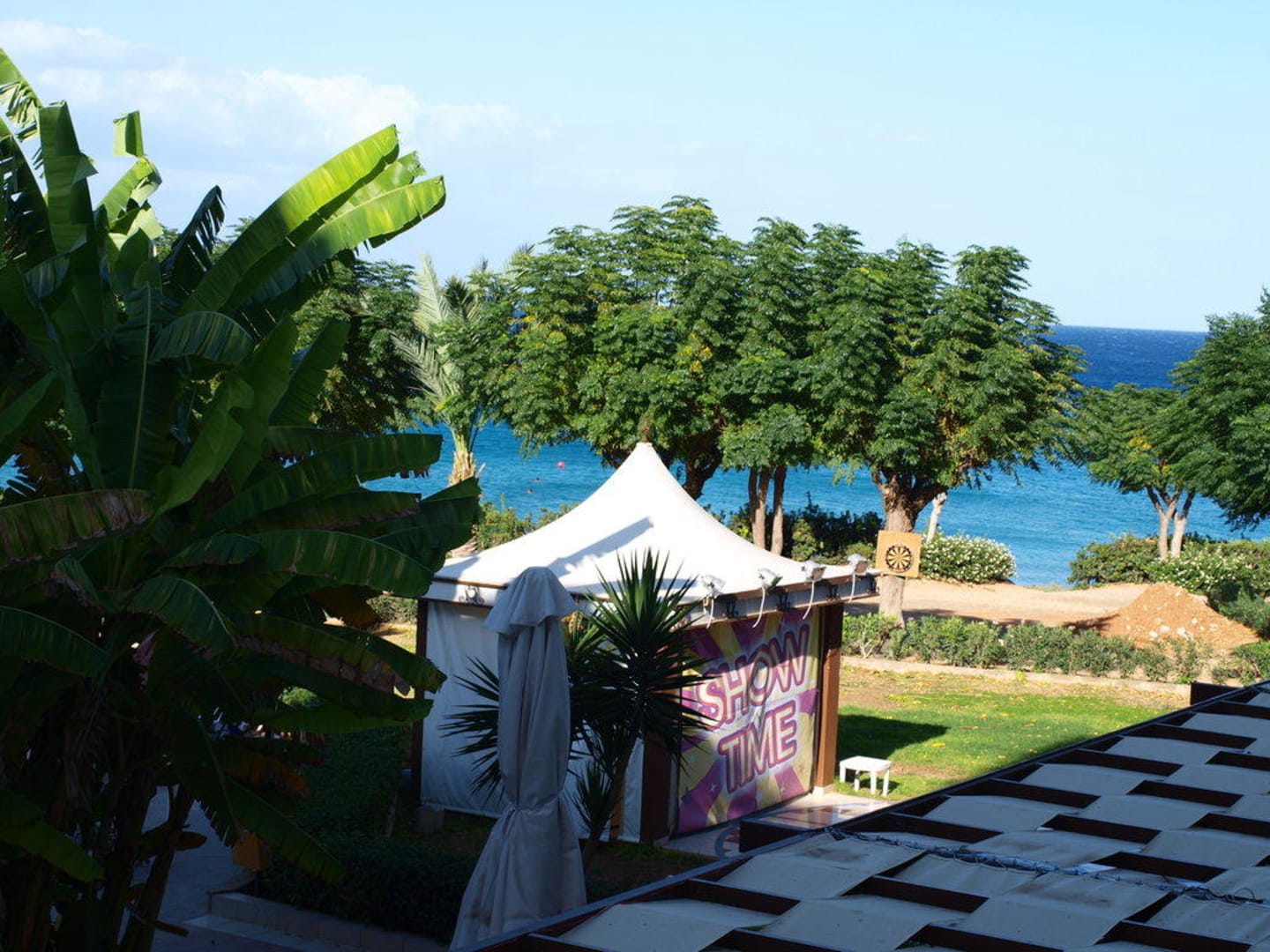 Blick vom Balkon auf abendliches Animationsprogram