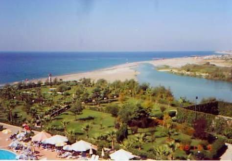 GartenanlageEin Blick auf die wunderschön gepflegte Gartenanlage des Riva Delta in Karaburun und auf den angrenzenden Fluss.