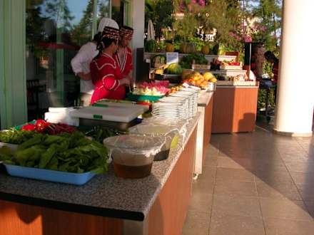 Buffetvor dem Speisesaal auf der Terasse.