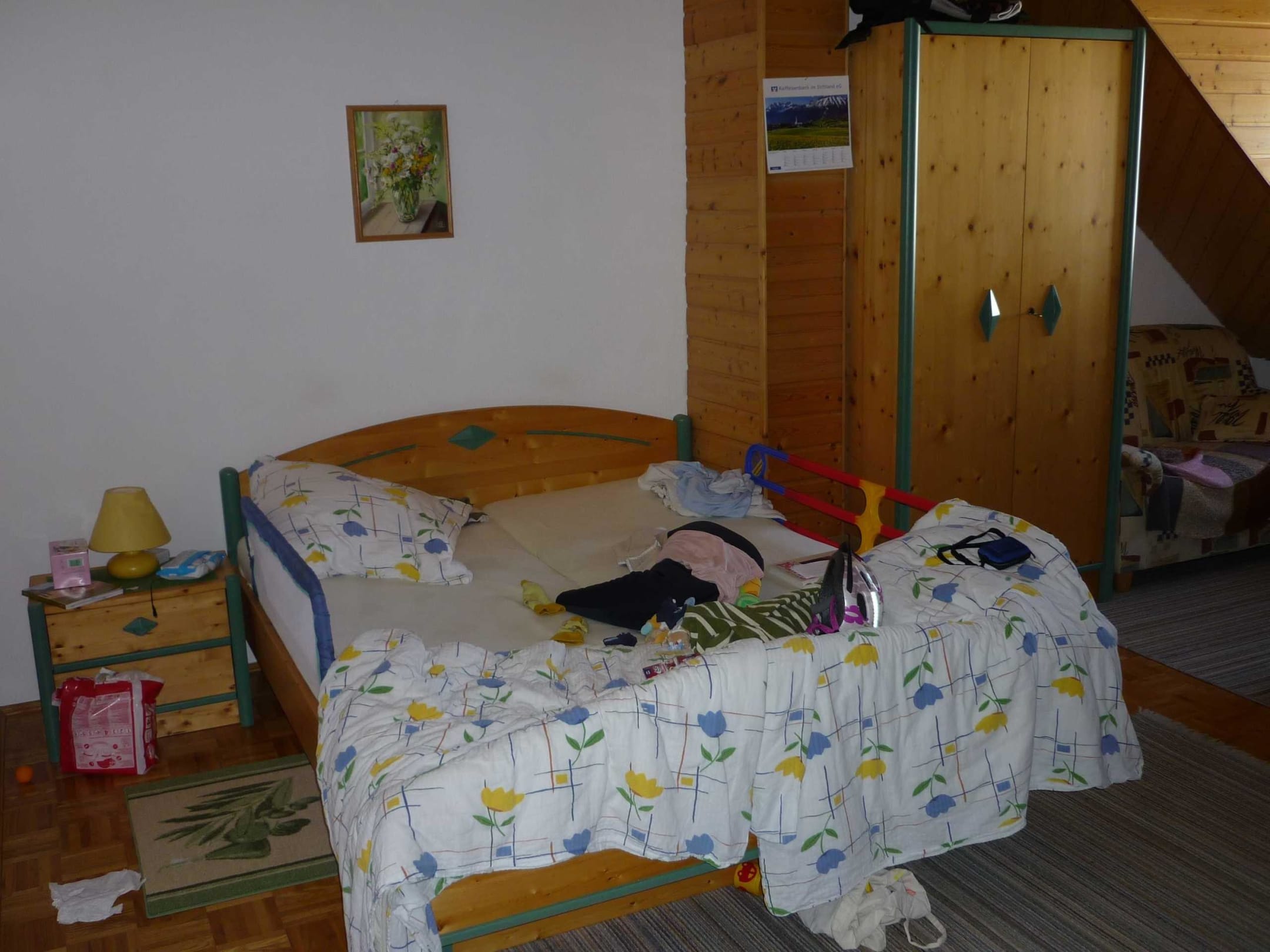 FeWo 4 besteht aus großem Wohn-/Schlafzimmer und Küchenbereich + separatem Schlafzimmer mit 2 Betten + Gitterbett, kl. Bad mit Dusche + lautem Ventilator