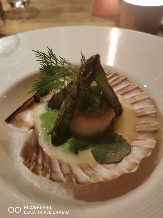 Jakobsmuschel auf Wasabicremeit grünem Spargel❤️