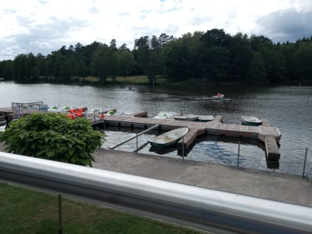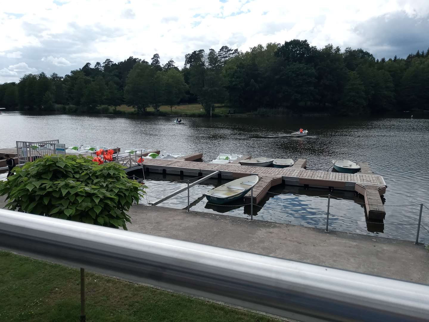 PostCorona1 Schöner Café mit Ausblick auf Tretboote im saarländischen Mississippi..