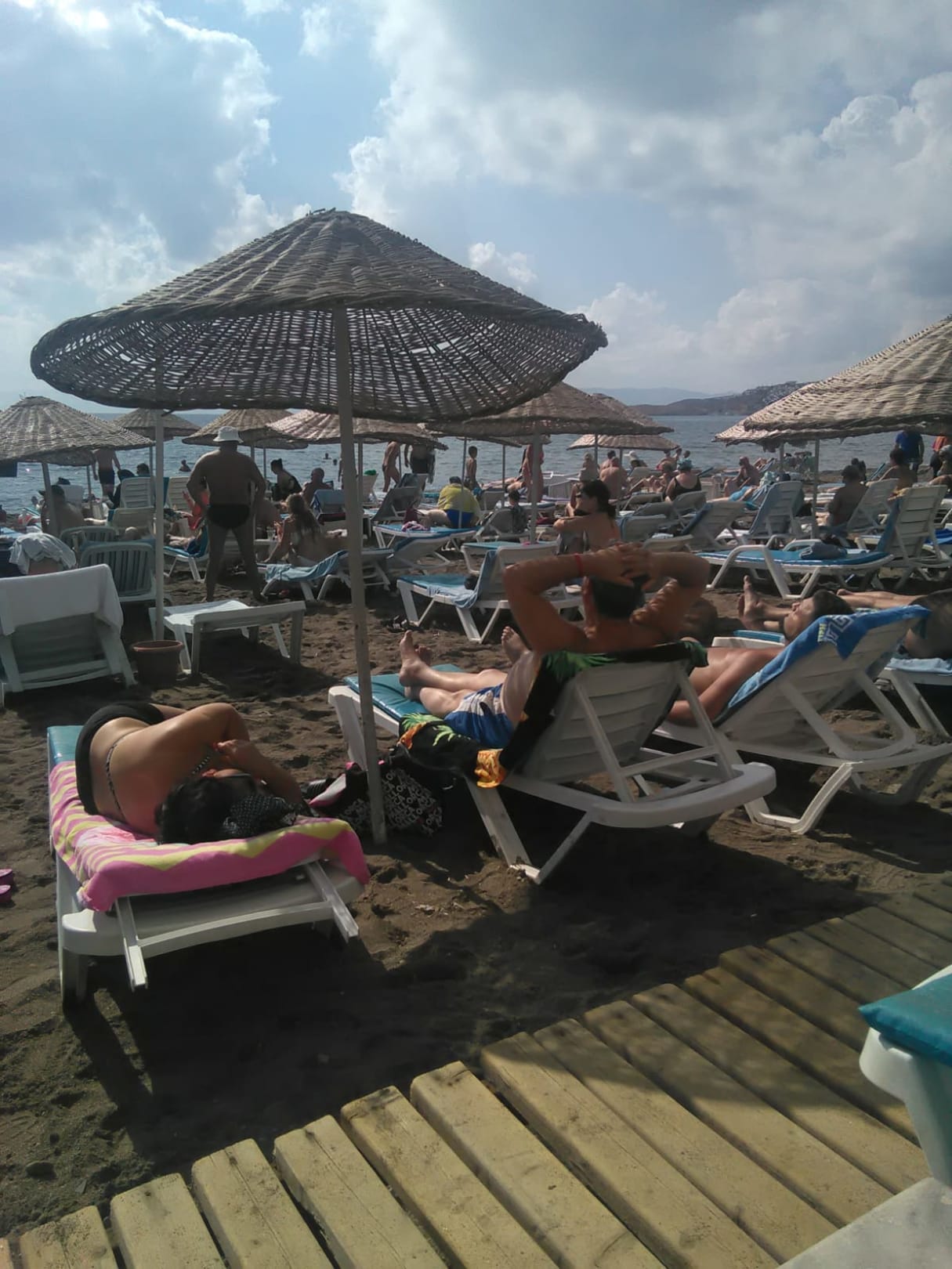 Im Oktober ist alles überfüllt. Viele Strand liegen sind kaputt