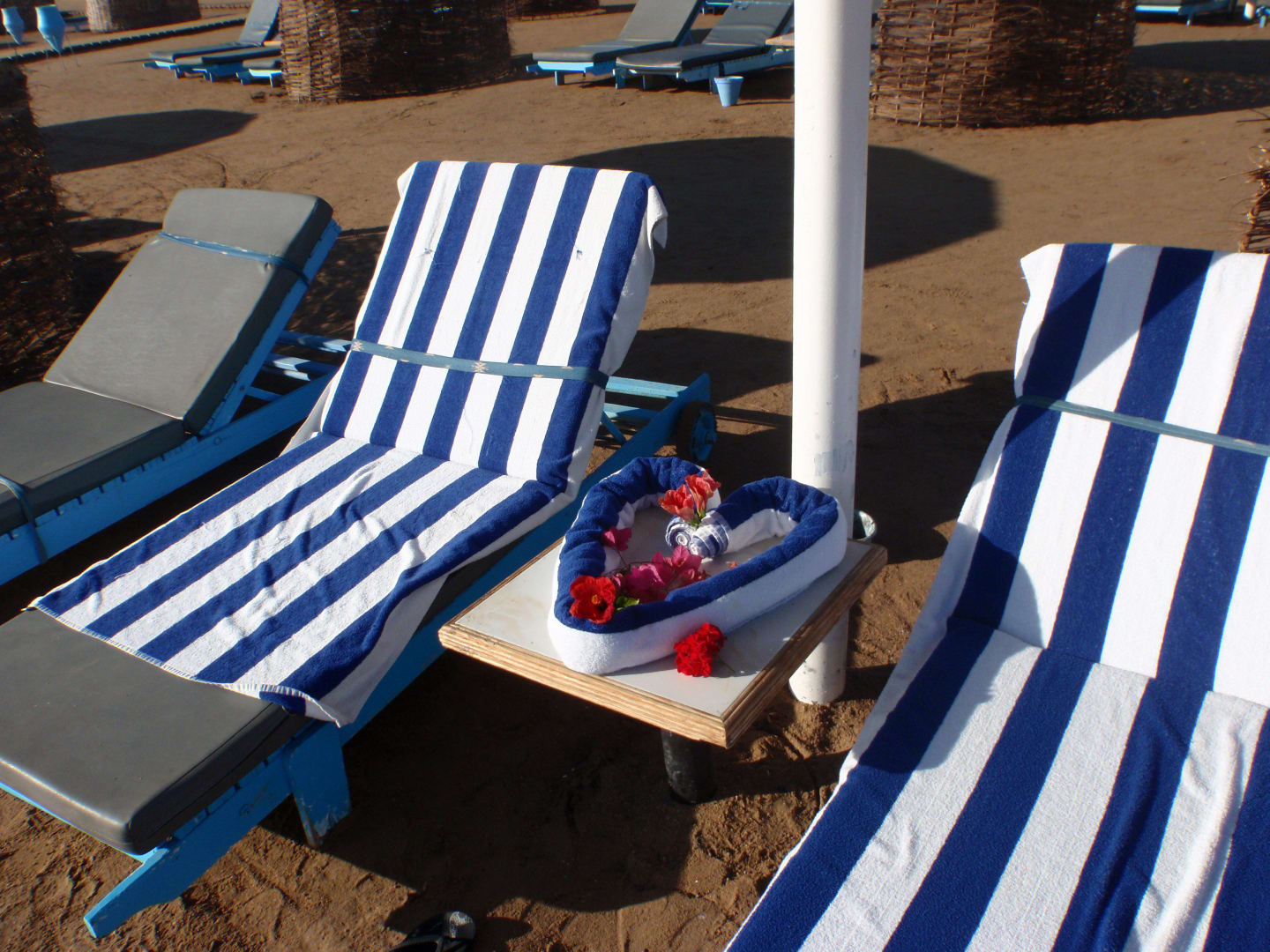 Strandliegen mit einem Gruss vom Personal