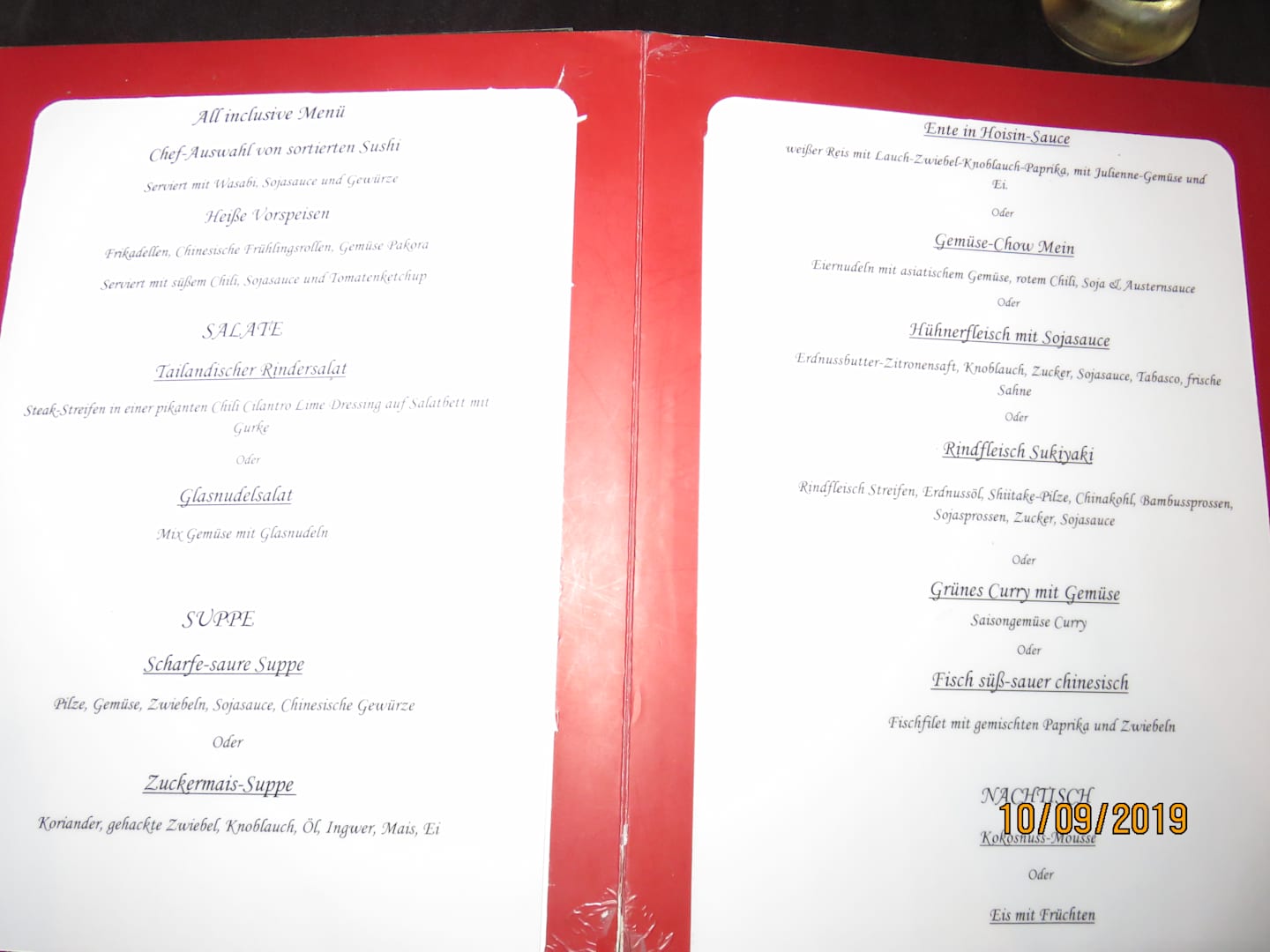 Speisekarte Tai!
