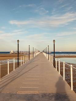 Den großen Steg entlang laufen um zum Wasser zu gelangen, denn heute war richtig Ebbe