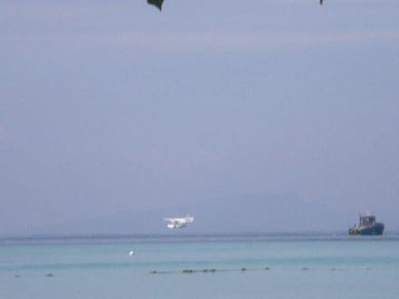 Wasserflugzeug vor dem Hotelstrand