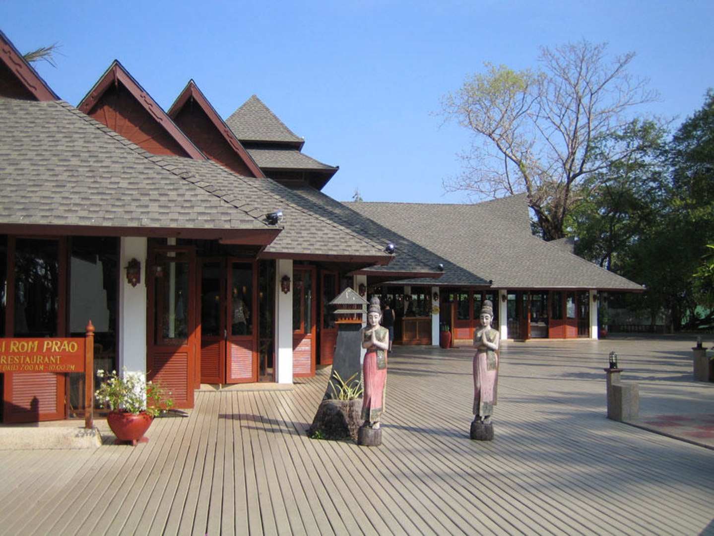 Restaurantrestaurant und frühstücksraum. zum abendessen werden die tische auf die terrasse gestellt....