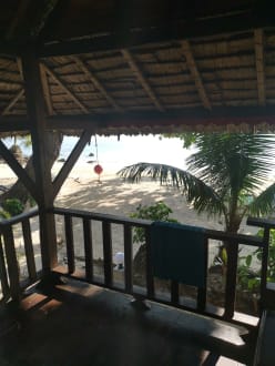 Blick aus dem Bungalow auf die Terrasse