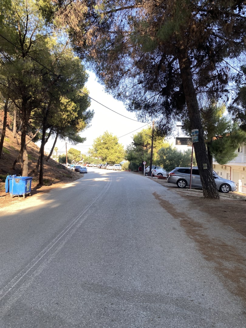 Der Weg zum Strand durch den Wald und über die Strasse