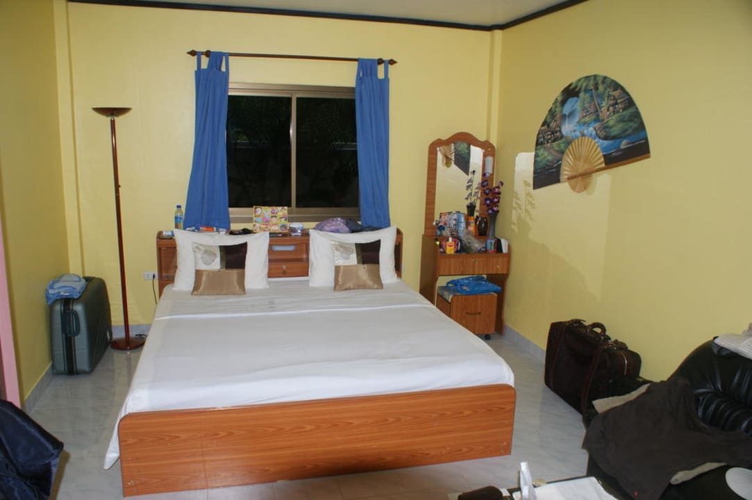 Gute Klimaanlage, großer Kühlschrank, Safe, großes Bad mit Außenfenster, Sitzecke, kein Fernseher (aber wer braucht den denn hier?)