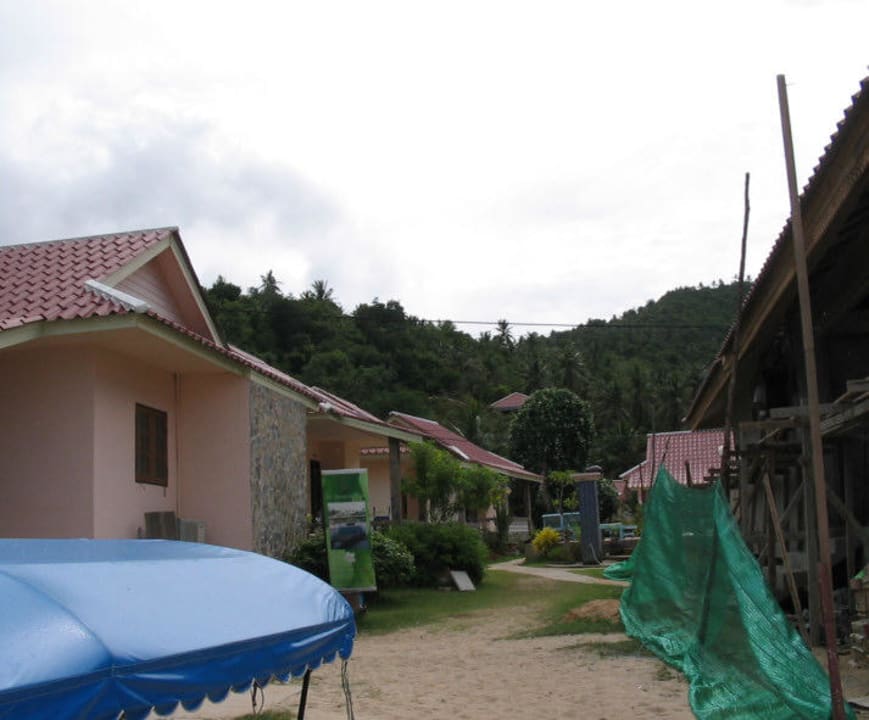 BungalowsBungalows vom Strand aus aufgenommen. Rechts ein Teil des in Bau befindlichen Haupthauses.