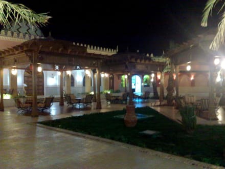 Sitzmöglichkeiten vor dem marokkanisches Restaurant
