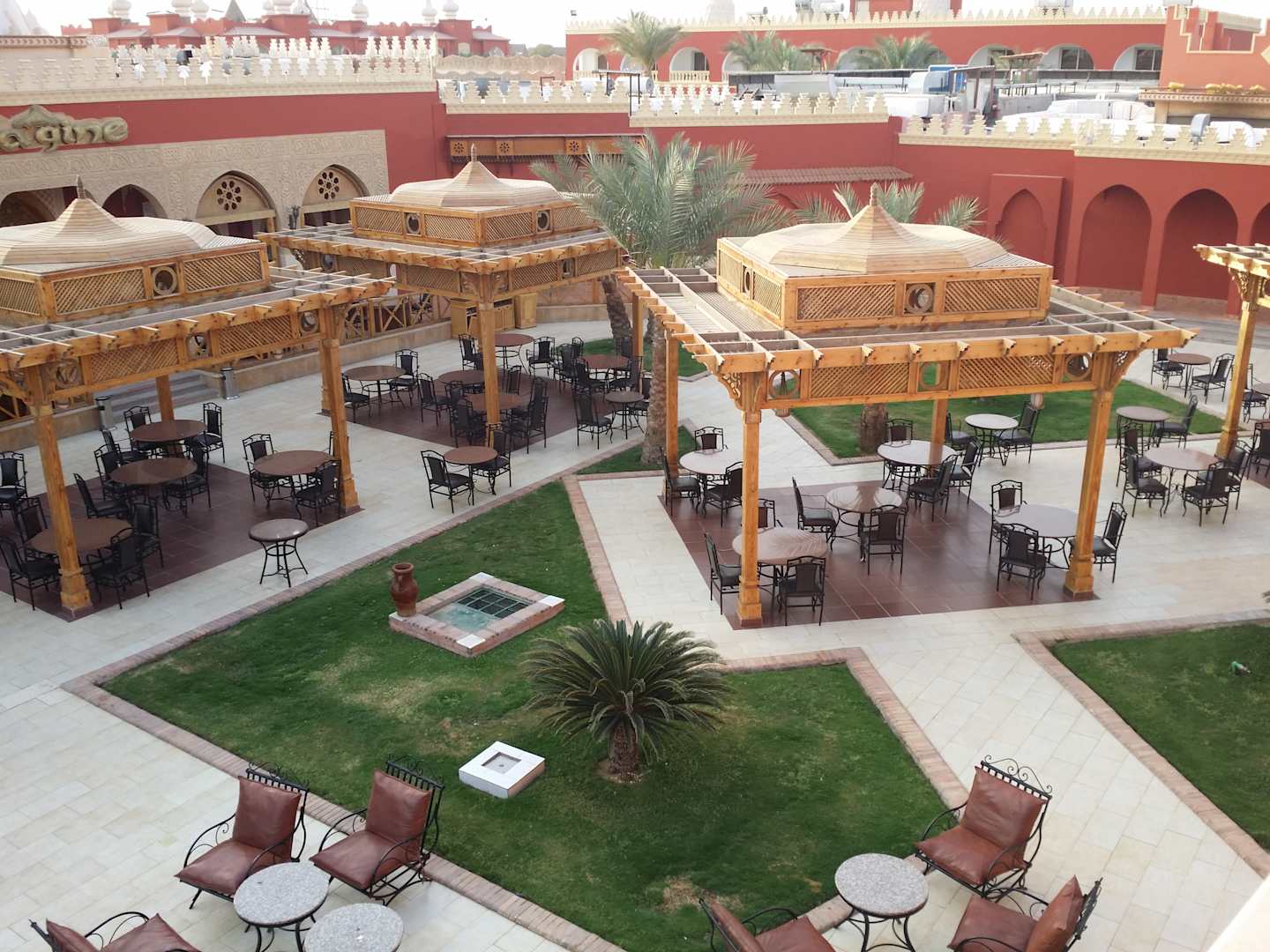 Hier kann man gemütlich sitzen. Ringsherum befinden sich alle Restaurants.