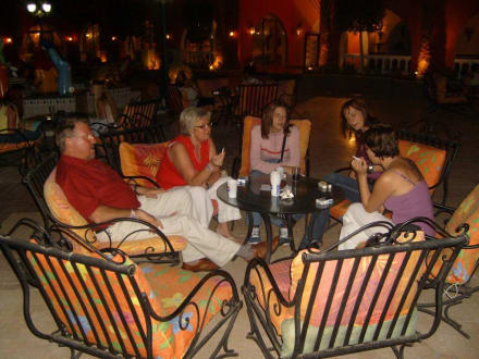 In dem großen Hof des Hotels trifft man Abends allerlei Menschen und kann fachsimpeln. liebe Grüße an Alle. War super schön mit euch!