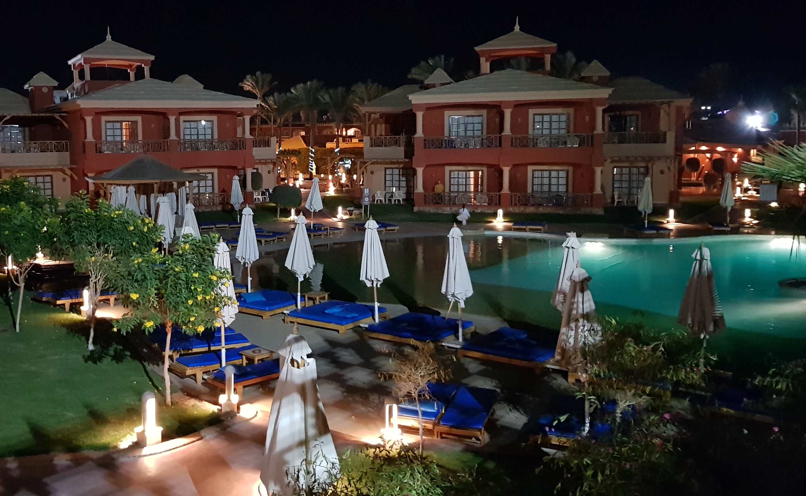 Blick von unserer Terrasse (Zimmer 467) auf den Pool im 400er Block
