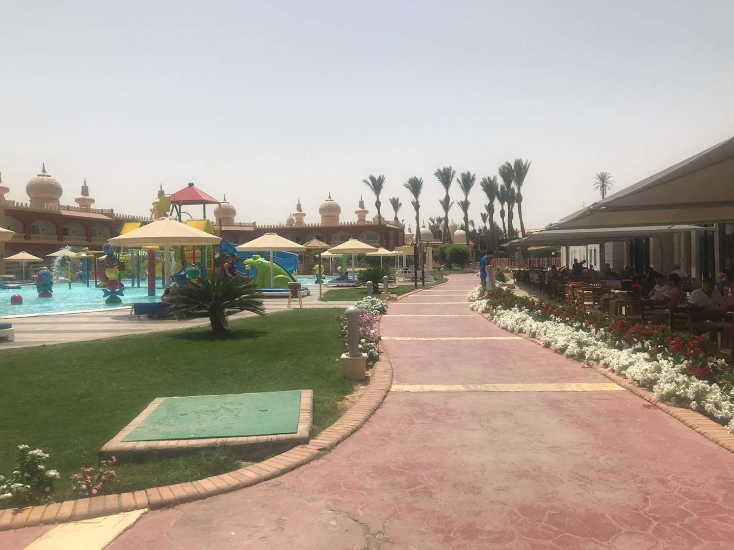 Links der kinderpool zu sehen und rechts das Hauptrestaurante