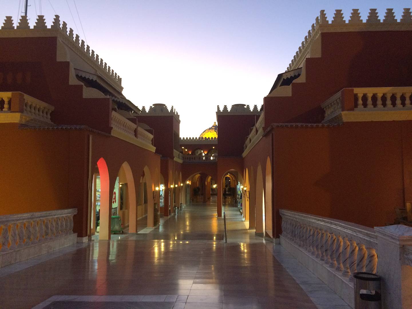 Passage zur Lobby vom Eingang aus gesehen mit rechts und links kleinen Shops zum bummeln