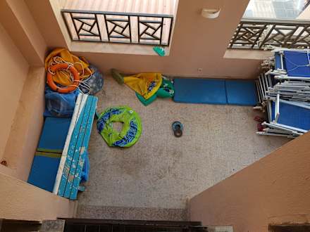 Auf dem Weg nach oben zu den Rutschen! Nicht schön anzusehen und überhaupt nicht kinderfreundlich. Eher eine abstellkammer für Defekte Gegenstände!