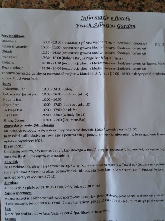 Informacje z hotelu