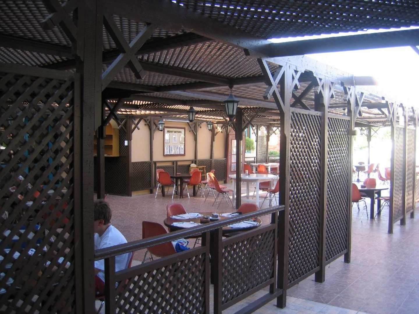 Tische vom Restaurant unterhalb der Sonnenterrasse im Albatros Resorts