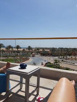 Ausblick von der Red Sky Bar rüber zum Strandabschnitt des Partnerhotels