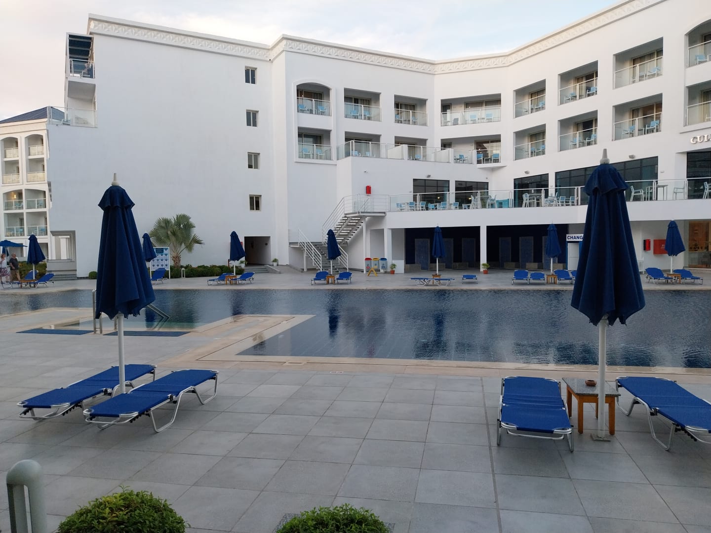 Blick vom Zimmer zum Pool