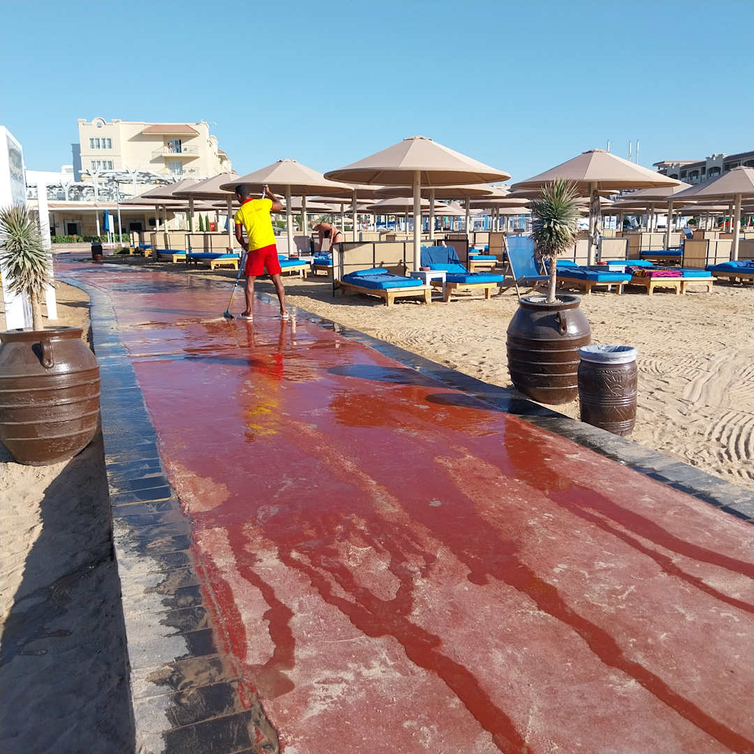 Jeden Morgen wird der Weg zum Strand gewischt