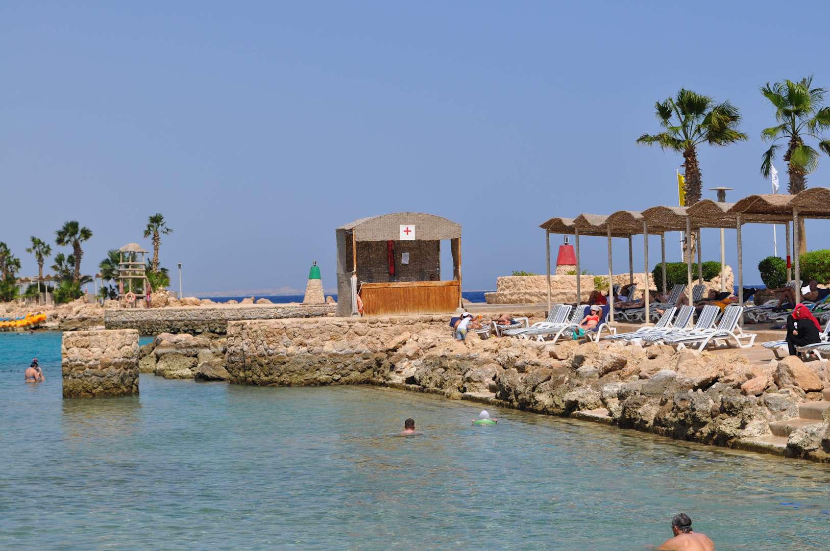 Lagune mit Erste Hilfe Haus