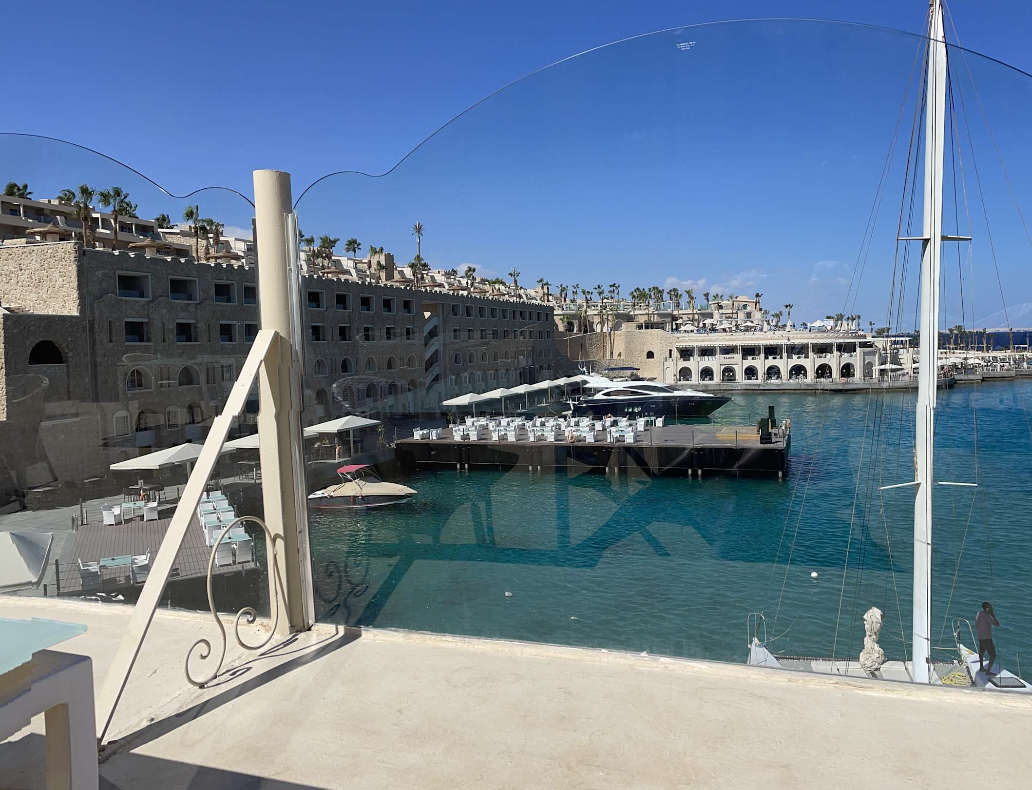Blick von der Terrasse auf den Hafen!